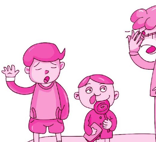 第三天,小明拖着一个流着鼻涕、嘴里咬着棒棒糖的小男孩出现在班主任面前,说:“老师,这是我叔。”