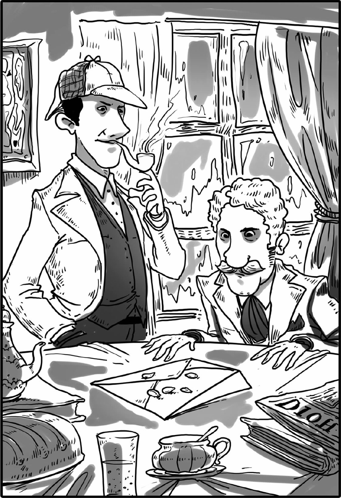 壁炉里的火焰燃烧得正旺,福尔摩斯沉默地坐在椅子里,头低垂在胸前,眼睛射向红色的火焰。接着他点燃了烟斗,靠向椅背,看着蓝色烟雾互相追逐着升向天花板。