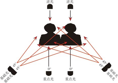这种布光方式简单明了,易于把握,是综艺节目常用的布光方式。