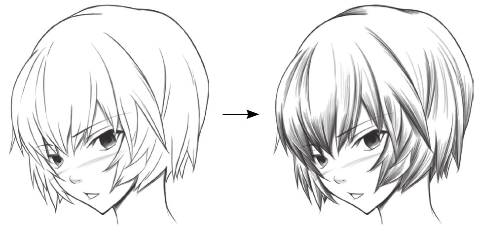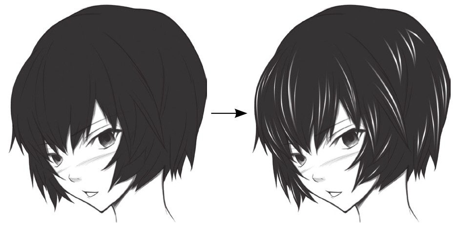 绘制浅色头发的时候,在每一缕头发处添加阴影,绘制出来的头发整体色调为浅色,这样的头发让人物看起来很活泼