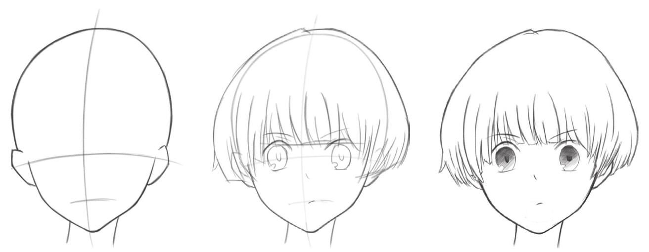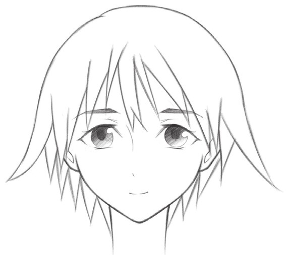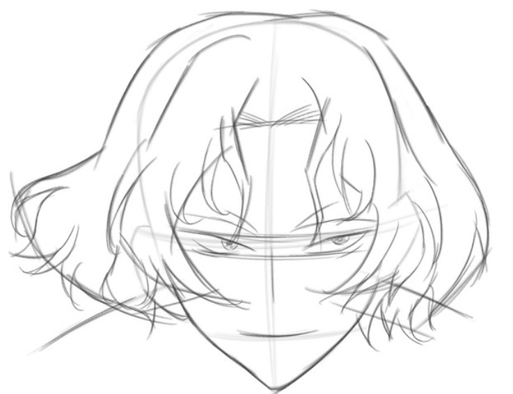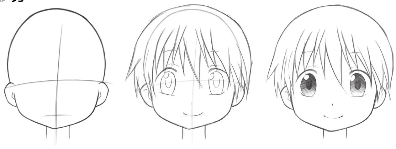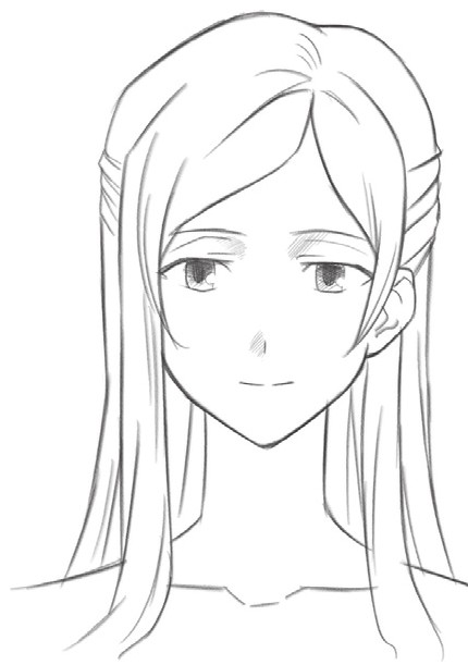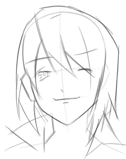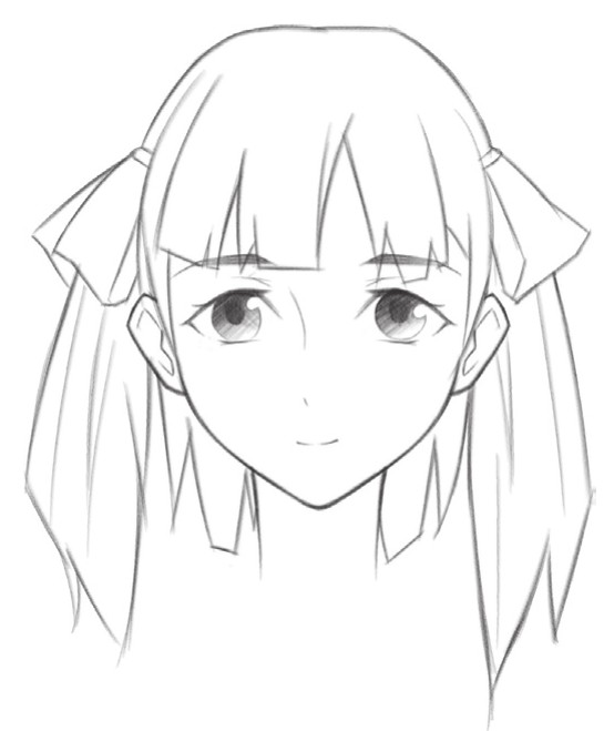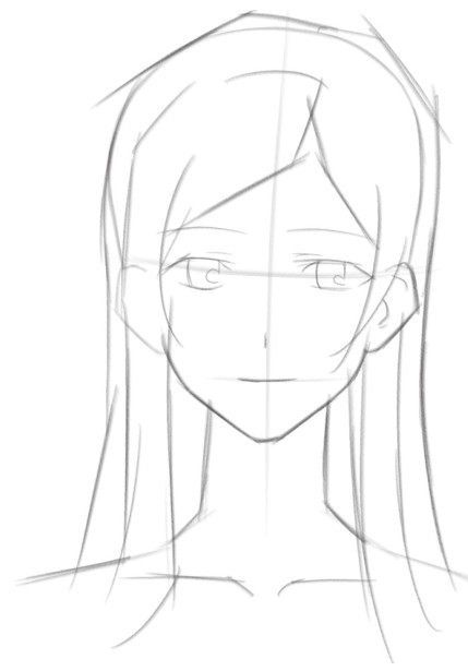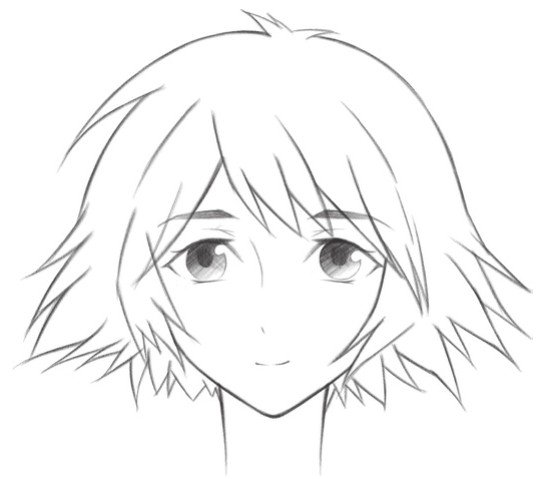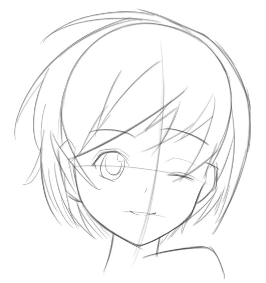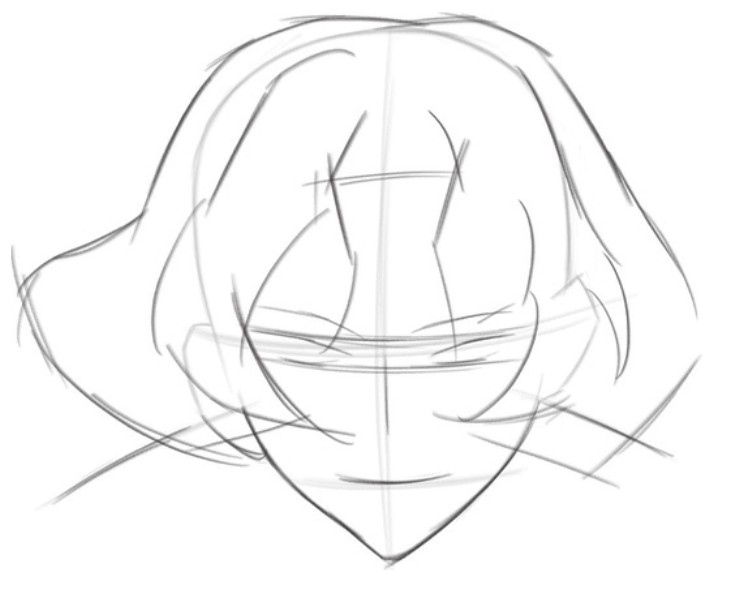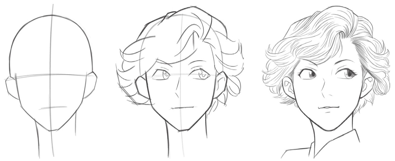 2 然后在上一步的基础上,确定发型大致的样式,注意发际线的位置要正确。