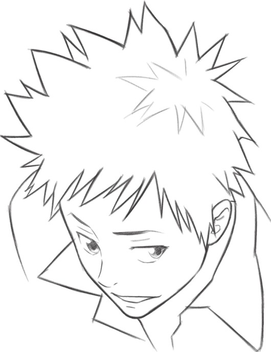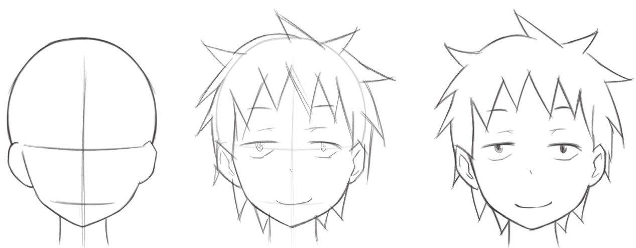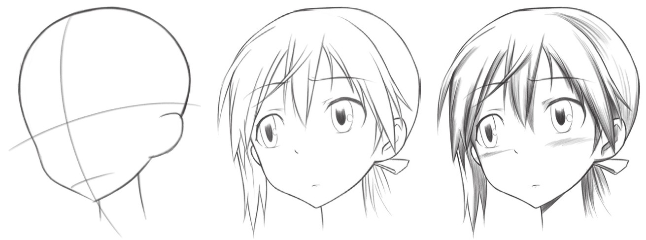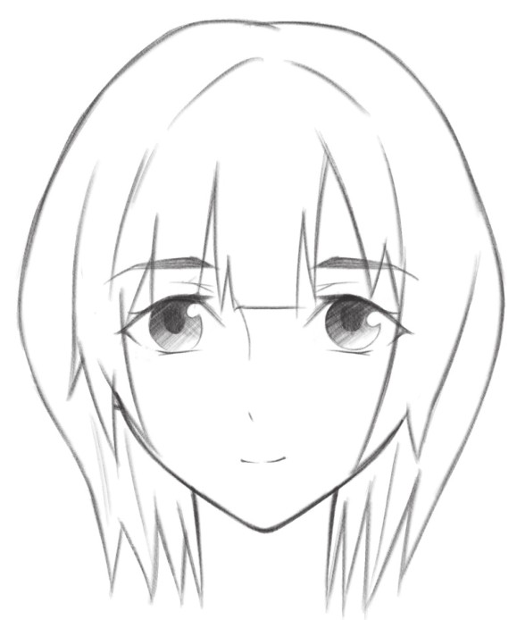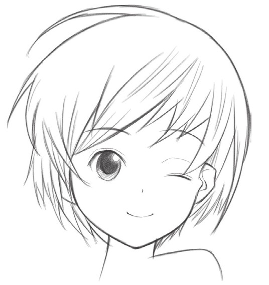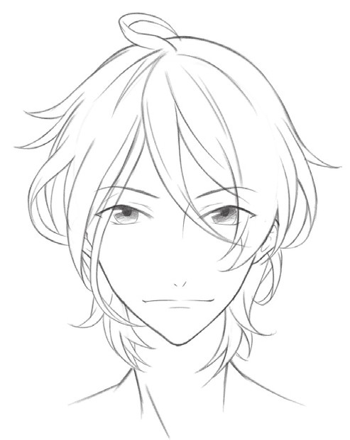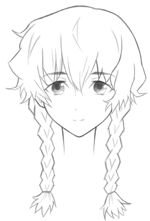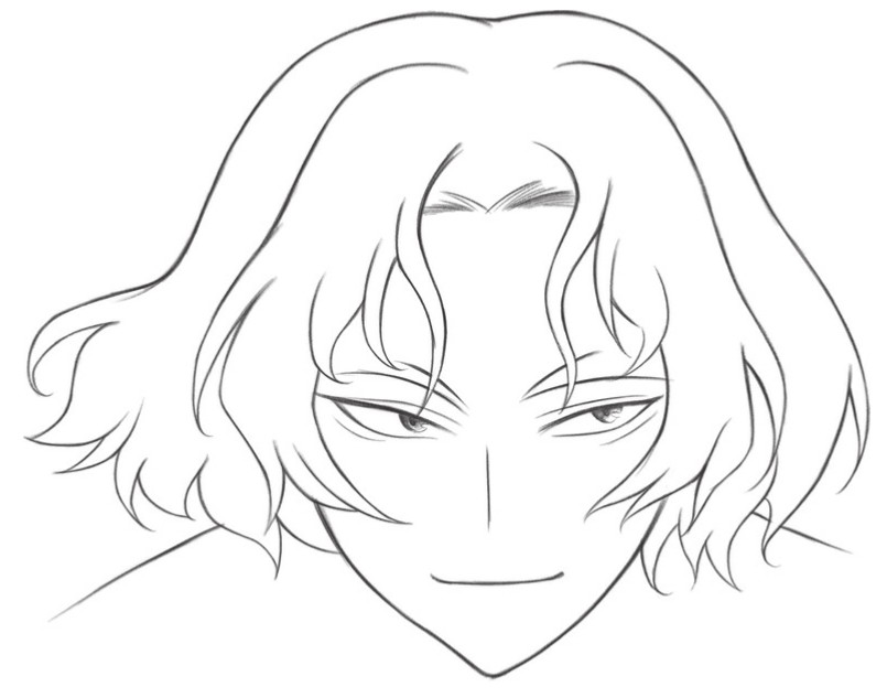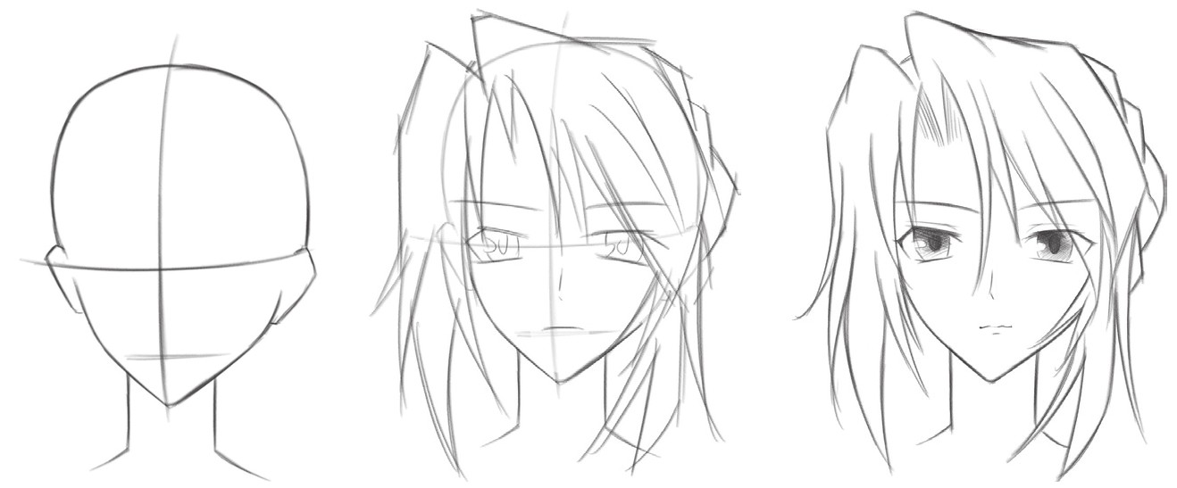 2 然后在上一步的基础上,确定发型大致的样式,注意发际线的位置要正确。