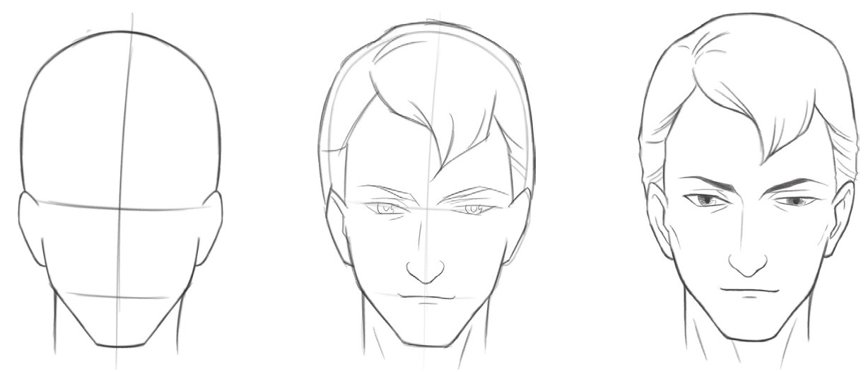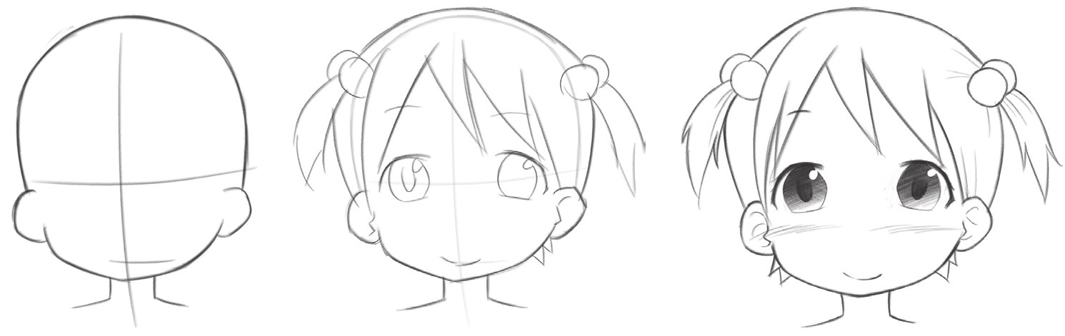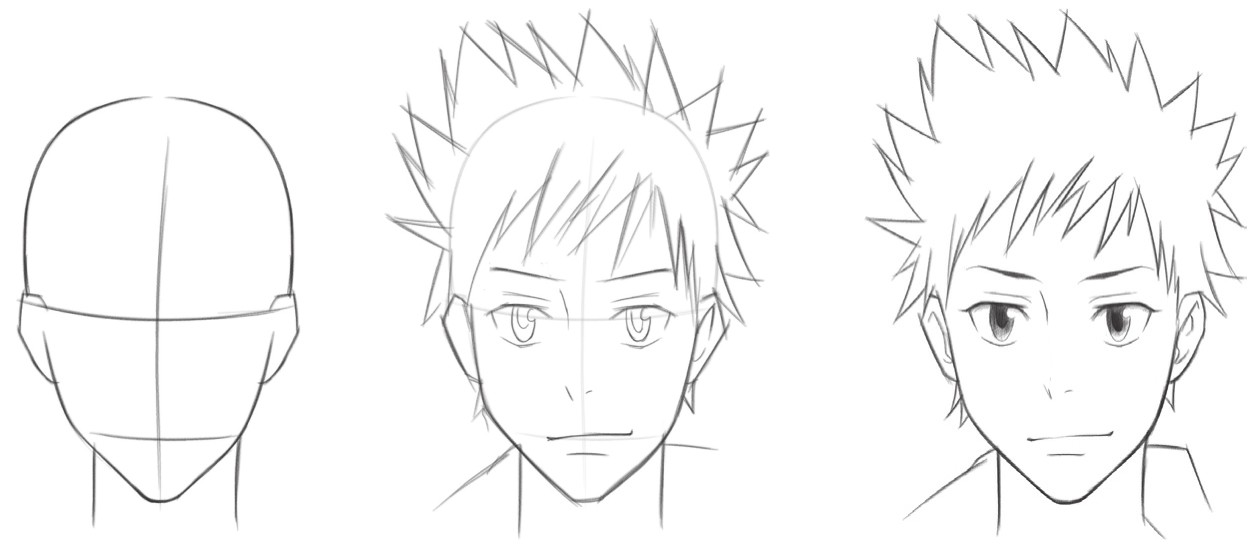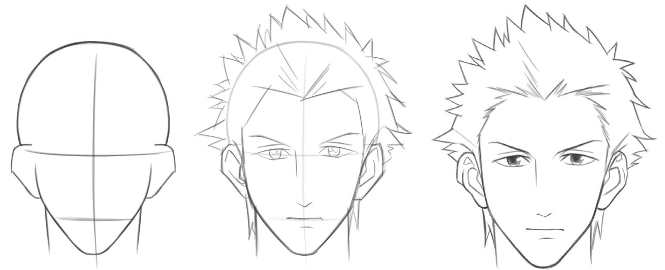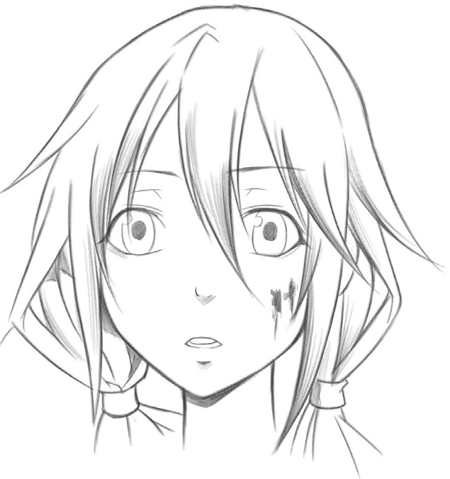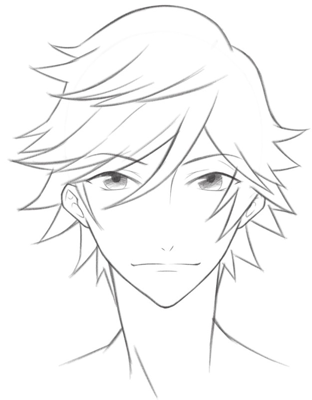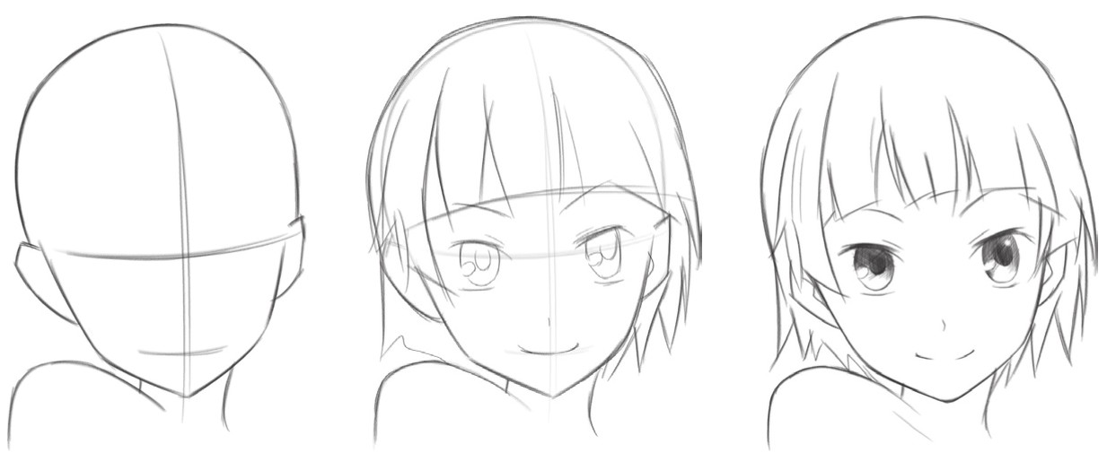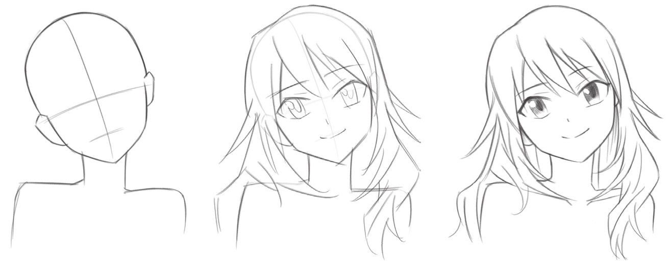 2 然后在上一步的基础上,确定发型大致的样式,注意发际线的位置要正确。