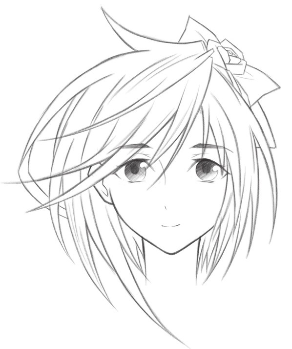 2 然后大致绘制出发型的样式,注意头发的走向要正确。