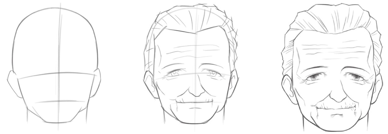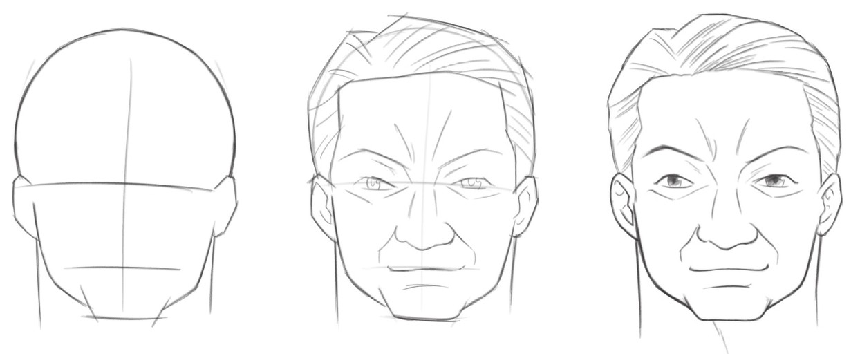 中青年:脸型有棱有角,五官立体,可以给眼睛添加些眼袋,增加人物该年龄的表现。