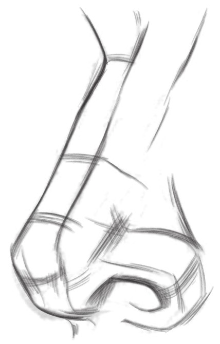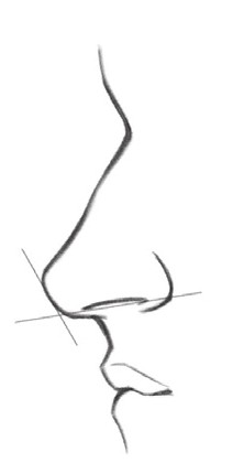 绘制人物侧面时要注意鼻子的轮廓造型。