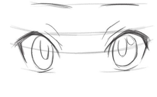 1 首先用简单的线条勾勒出眼睛大致的样式,注意两只眼睛间的距离为一只眼长。