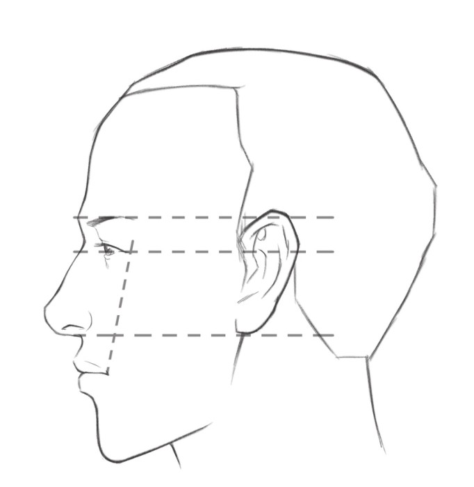 从侧面看,耳朵的高度等于眼睛到鼻底的高度,外眼角到耳朵的距离等于外眼角至嘴角的距离,这些是常规的比例,在绘画的时候也不能生搬硬套