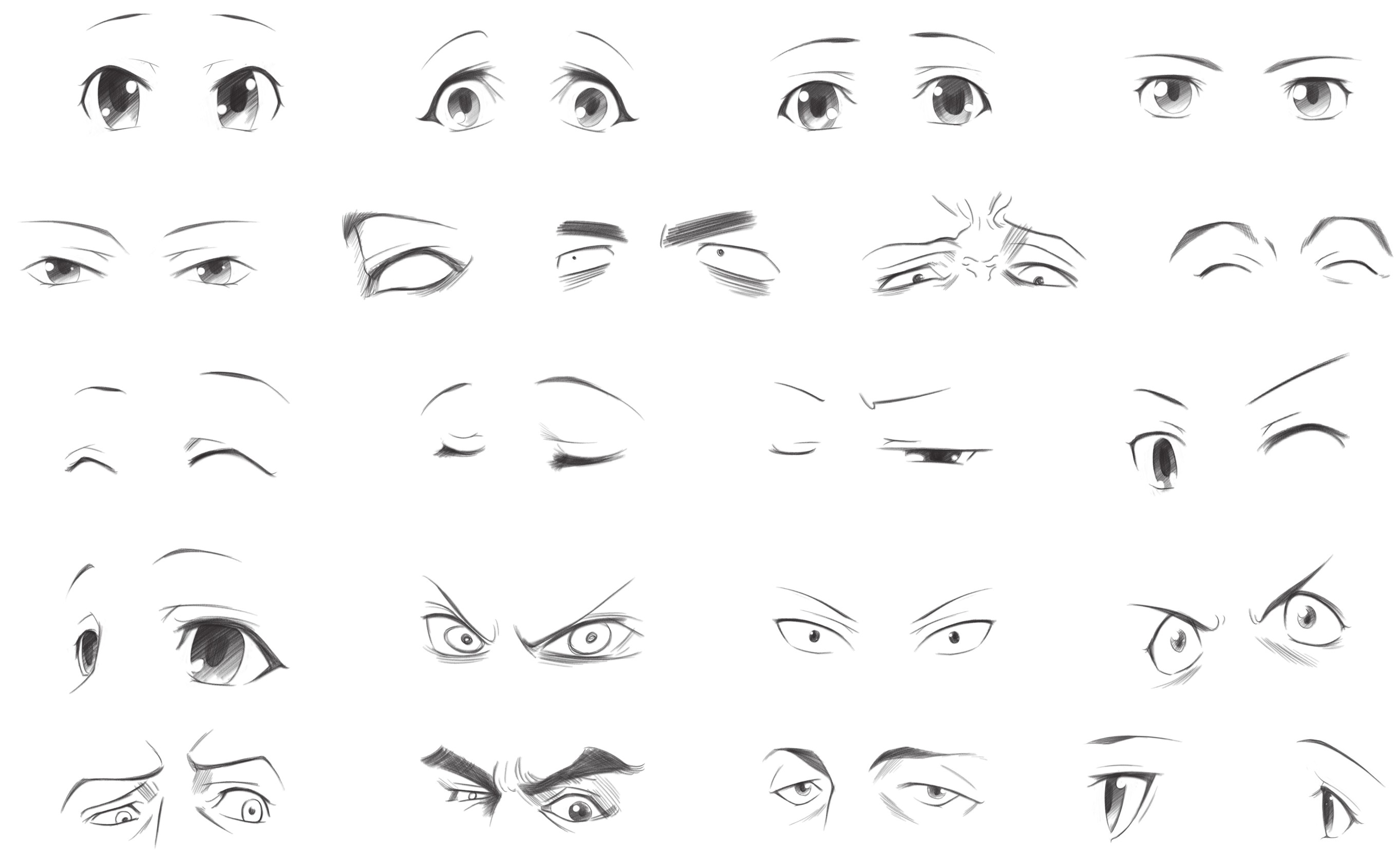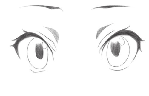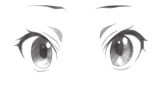 茫然时眼睛的表现:眉毛上挑,眼睛睁大,为了表现出茫然的感觉,可以只绘制出瞳孔中间的颜色,其他地方留白。