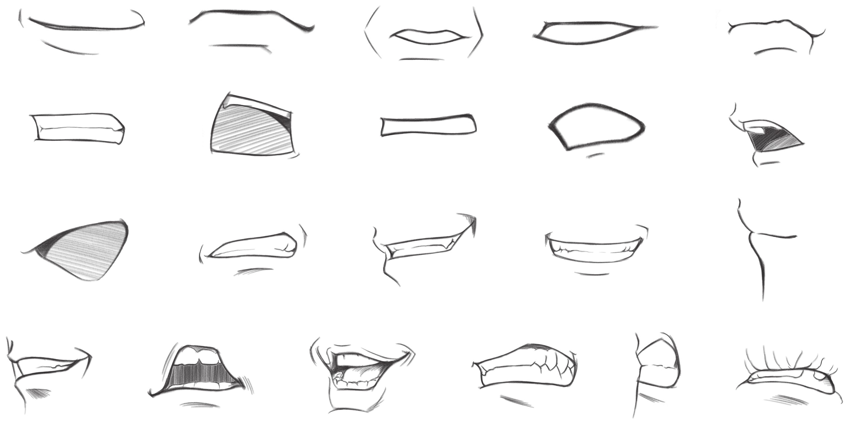 上下唇分别是两个相对的W型,上唇比较长,唇线比较分明,突出于下唇。漫画中常常将嘴巴简单化或夸张化,从而让人物的情绪表现得更加淋漓尽致。