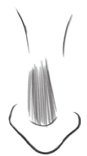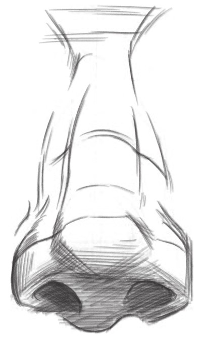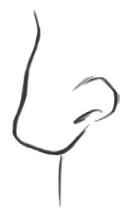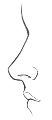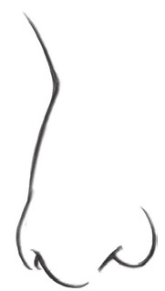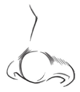 鼻子由鼻梁、鼻翼、鼻孔组成,鼻子突出在脸的中央。漫画中可以将鼻子进行简单化,如在绘制小孩子的时候常常只用简单的线条或点表现鼻子;而绘制成年人特别是男人的时候,才会将鼻子画得很明显;还可以将鼻子进行夸张表现,如绘制巫婆、怪人等的时候,将鼻子画得很夸张,从而更能表现出人物的性格特征。