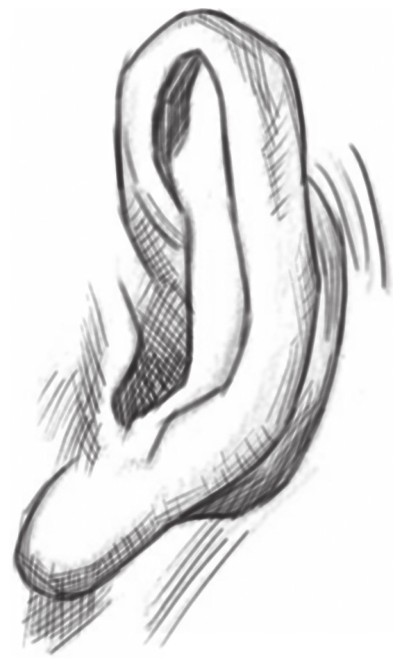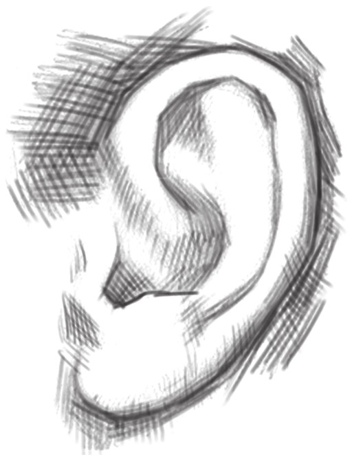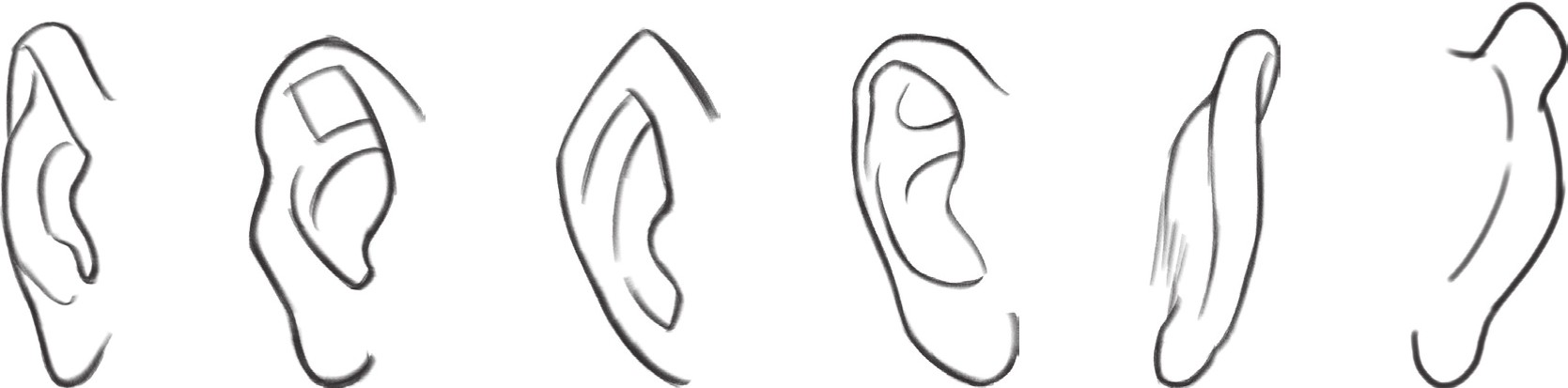 耳朵由外耳、中耳、内耳3部分构成。耳朵造型变化不大,所以只要记住它的造型,绘制起来就很容易。