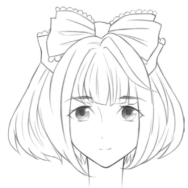 这种发型让人物看起来很可爱,搭配蝴蝶结显得更可爱