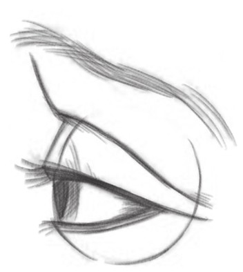 漫画人物的眼睛表现要比写实的丰富很多,可以将眼睛绘制成大大圆圆的,也可以将眼睛绘制成细细长长的,表现的形式也有所不同,如将上眼睑绘制成较粗的、有变化的线条,而下眼睑用简单的线条表现即可。