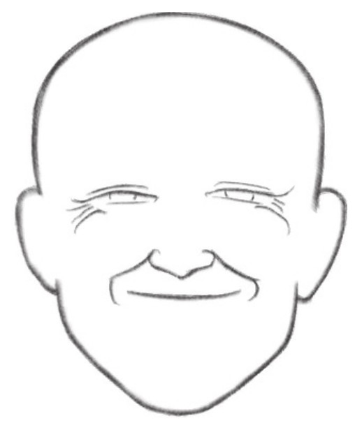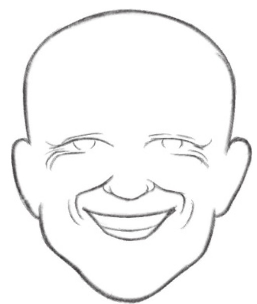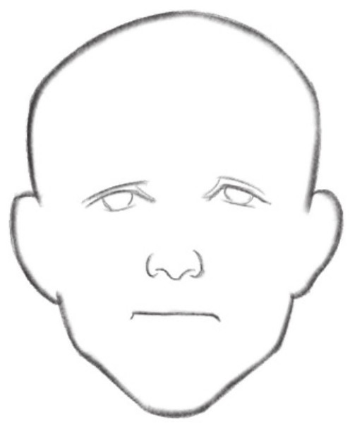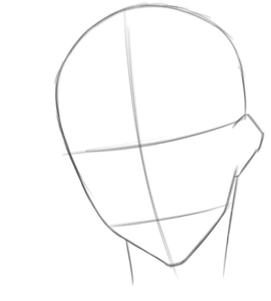 1 首先用简单的线条勾勒出头部轮廓,并确定好中线、眼睛和嘴巴的位置。
