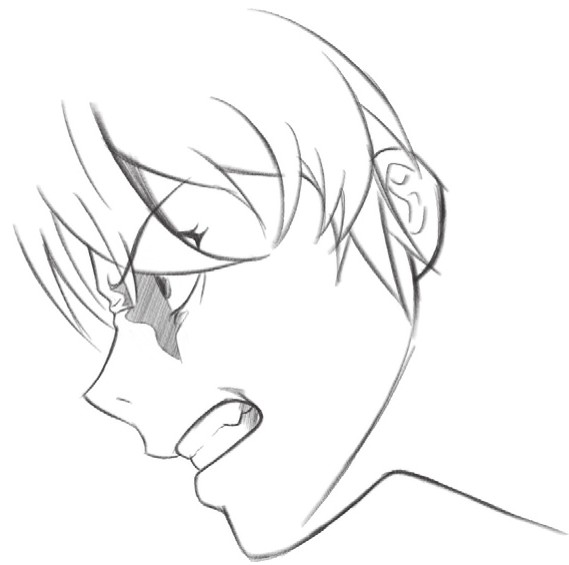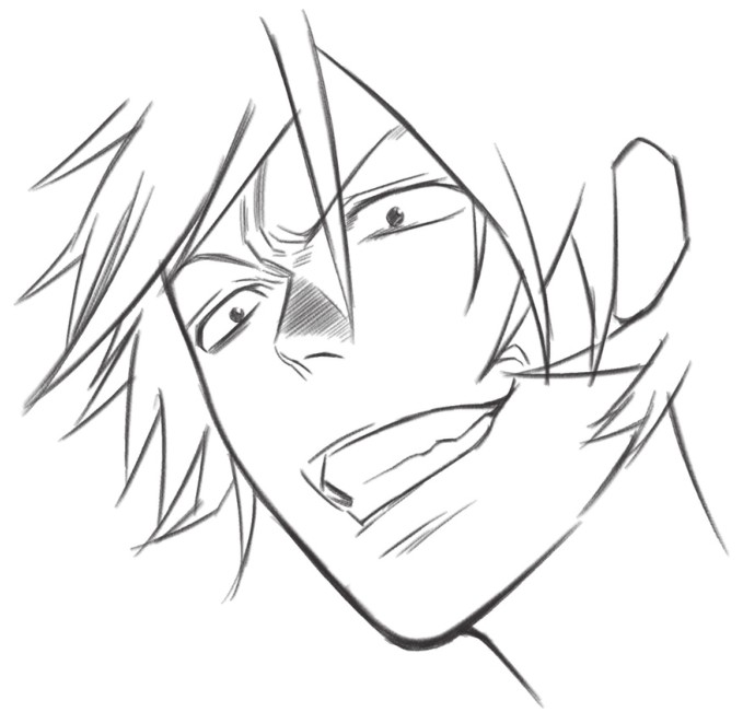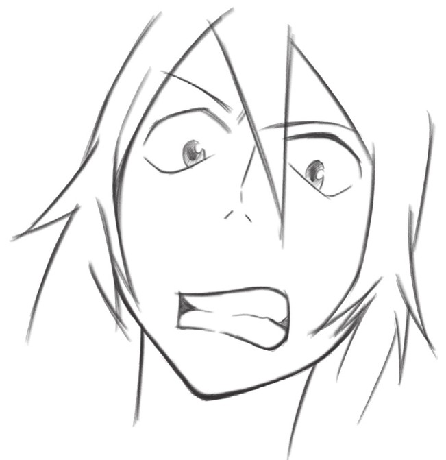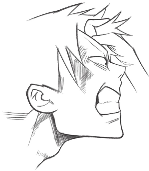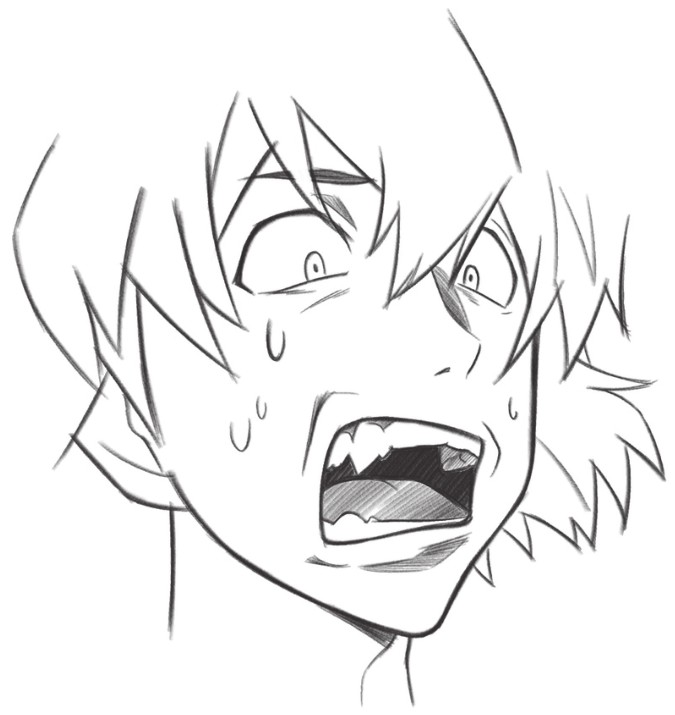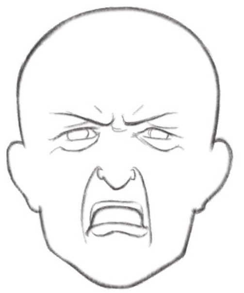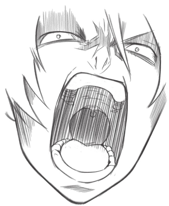 缩小的瞳孔、张大的嘴巴、还有眼睛周围的阴影,让人物怒吼的表情更加生动