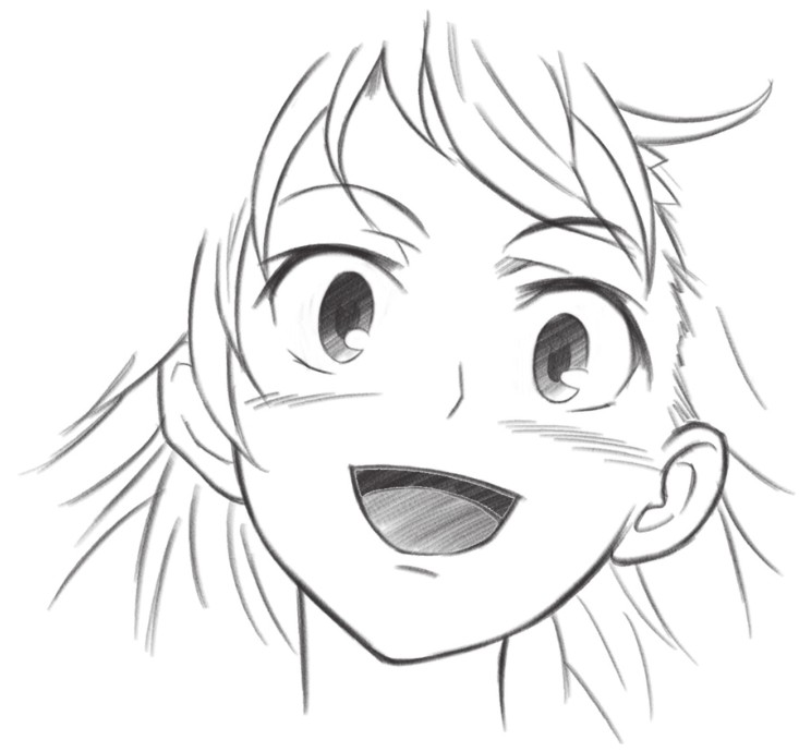 漫画中除了正常表现人物表情外,还可以夸张地表现人物的表情,如嘴巴张得很大,眼睛瞳孔可以留白,或将眼睛绘制成心形等,这样能让人物情绪表现得更加淋漓尽致。