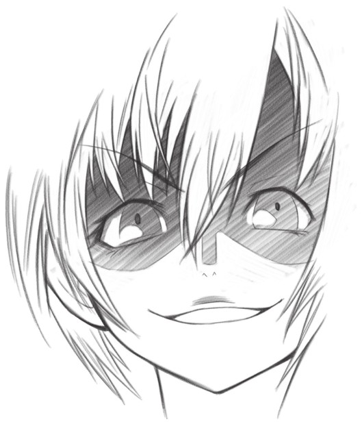在脸的上半部分添加阴影,通过明暗对比,让阴险狡诈的眼神更加突出,在上嘴唇处绘制阴影,让人物抬头的效果更加明显