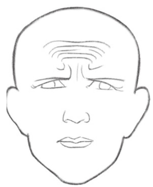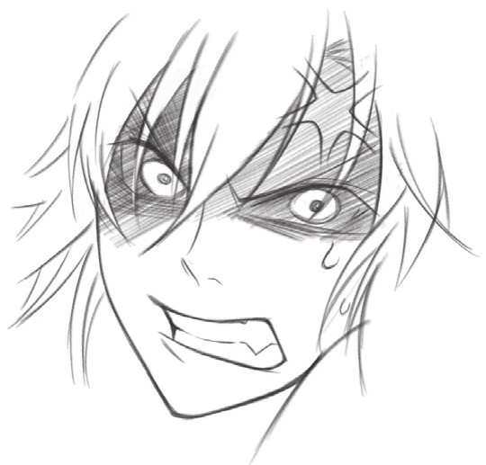 在脸的上半部分添加阴影,通过明暗对比让人物生气的眼神更加突出,在额头处添加青筋凸起的效果,让生气的表情更加生动