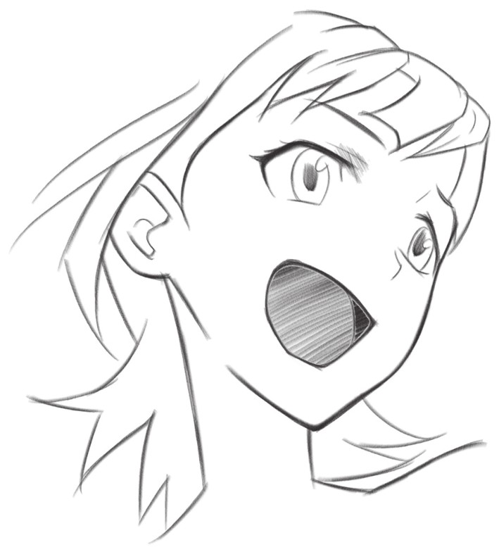 这是吃惊害怕的表情,绘制牙齿的线条要有虚实的变化
