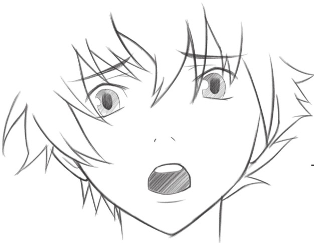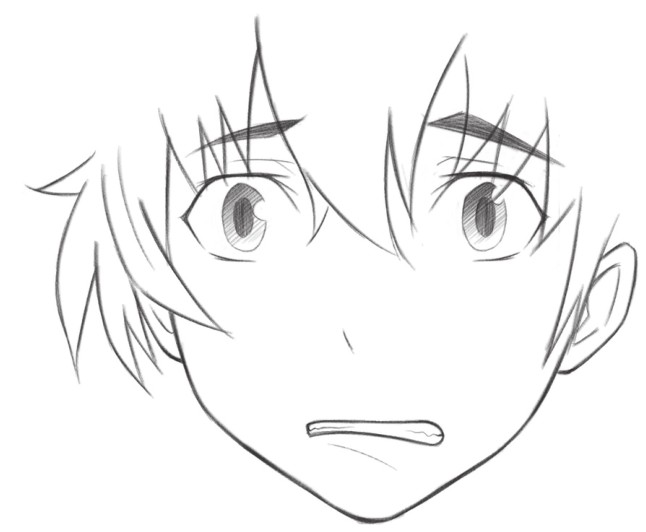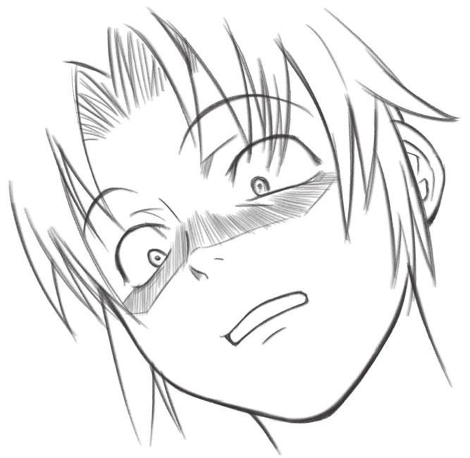 在眼窝处和眼睛下方绘制阴影,通过明暗对比,让吃惊、不可思议、恐惧的眼神更加突出