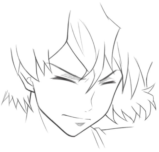 2 然后在上一步的基础上绘制出人物的发型和表情样式。