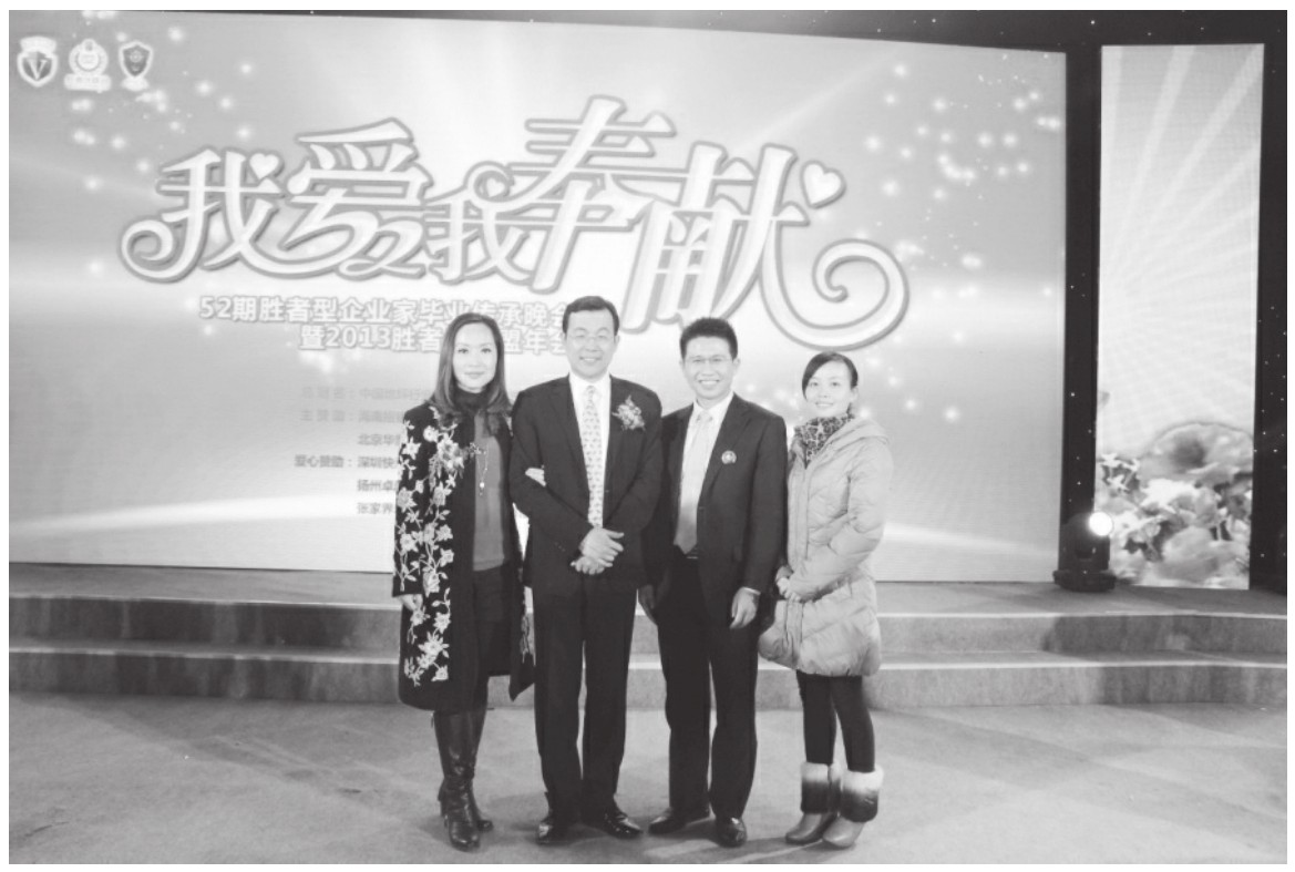 图为晓印老师、肖琼娜老师夫妻和张斌老师夫妻在爱心活动现场合影