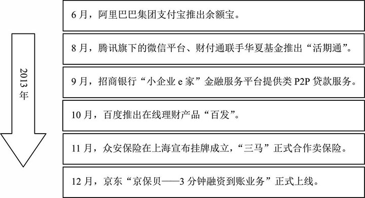 自2013年6月起,我国互联网金融行业几乎每个月都有标志性事件发生,如图1.3所示。