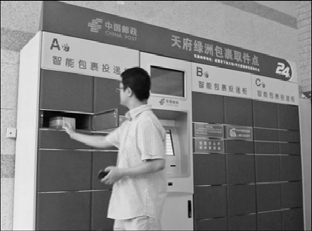 放入智能包裹箱的包裹将保管48 h,收件人完全不用担心临时不能签收的情况。随着物流需求的扩大,这种智能包裹箱能方便物流公司全天候包括夜间投送的频次。不仅给公司带来方便,也更便于人们的生活,如图1.18所示。