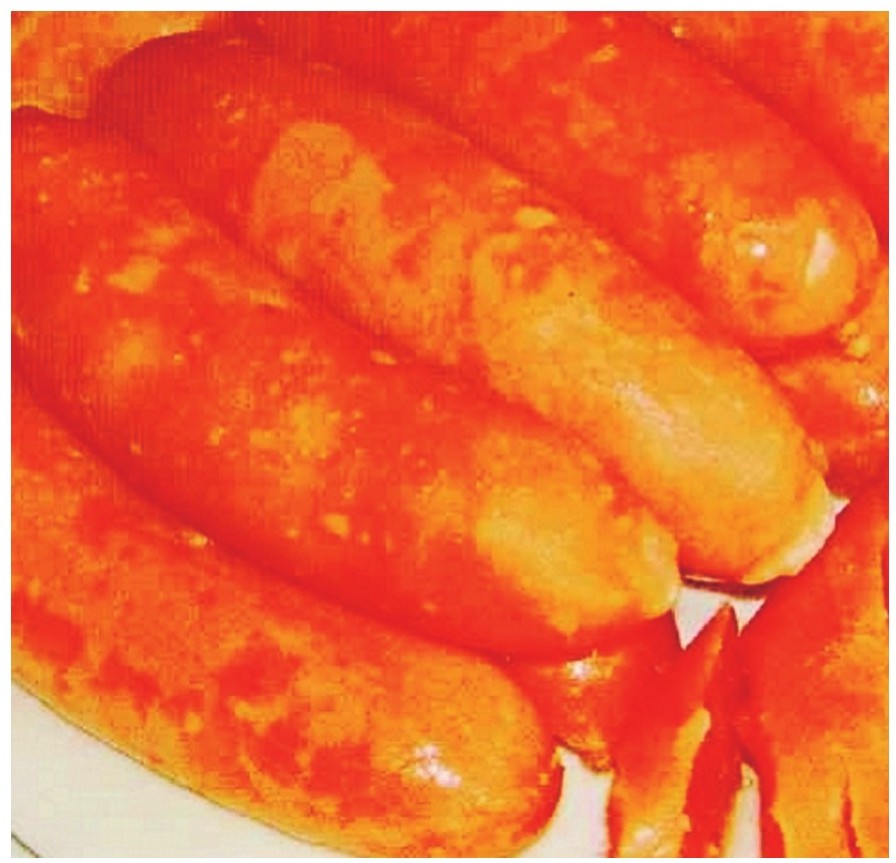 戴伯瑞钦那香肠是匈牙利的一种传统香肠,其实它与法兰克福香肠有共同点,就是好吃而不油腻。戴伯瑞钦那香肠的原料是牛肉、猪肉、盐、红椒以及香料等,把这些原料灌入猪肠后再用烟去熏,这样做出来的香肠会格外香。