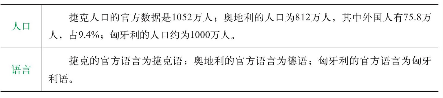 捷克、奥地利、匈牙利位居欧洲的心脏位置,三者相距也比较近,在历史上也相互交融过,曾经属于同一个王国统治。