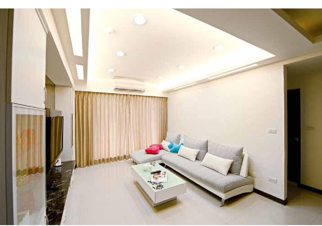 客厅:简洁大方的空间感,天花板以间接照明搭配嵌灯,呈现柔和的灯光氛围。