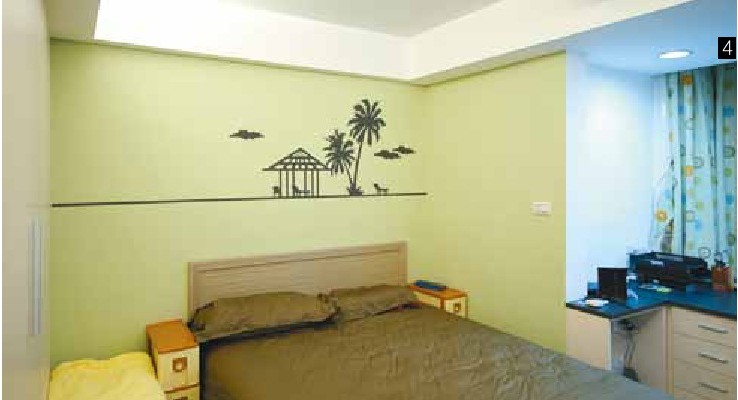 4.男生房:男生房淡绿色的墙面,涂绘出巴厘岛风情,带出空间的惬意与悠闲。