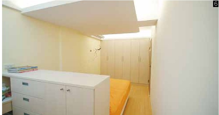 6.梳妆区:由于屋子建筑本身的关系,有一处大斜边,设计师则运用此畸零处规划成小型梳妆的地方。