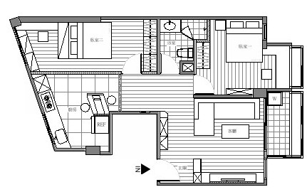 女生房以造型天花层板做出间接照明,透过光源来赋予空间柔和之美,并运用建筑本身的斜边畸零处规划成小型梳妆的地方,墙面则绘制桃花,祝福桃花朵朵开;男生房淡绿色的墙面,涂绘出巴厘岛风情,带出空间的惬意与悠闲。