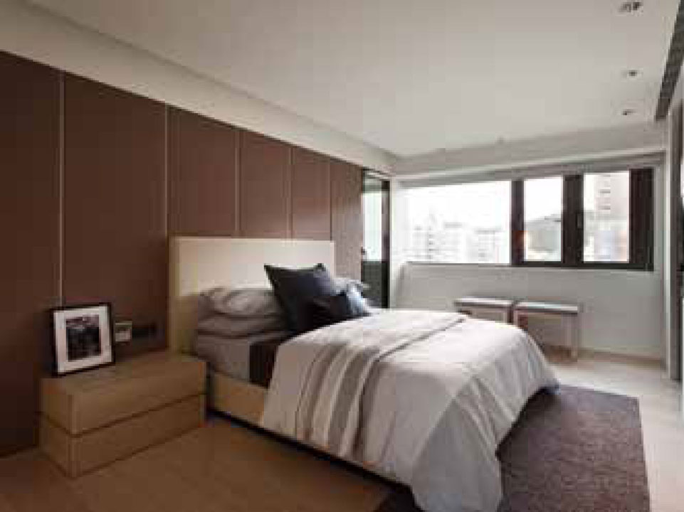 主卧室:简约的设计线条,营造休息时的无压氛围。