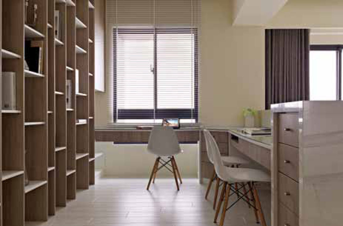 书房:考虑到男主人从事科技工作的需求,以及女主人擅长缝纫的喜好,大书房设计不仅可自在地从事打版等事务,还有着3到4人宽敞互动的空间。