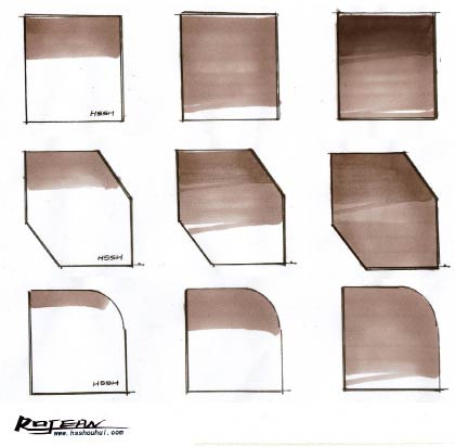 常用于产品效果图局部面体的上色,依据个人用笔习惯可以从上至下或者从左至右表现出由远到近、由上至下的空间纵深关系。