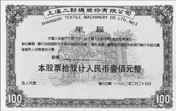 在股票电子化以前,股民购买股票的时候可以得到一张印刷精致的纸质凭证,即实物股票,如图1-1所示。