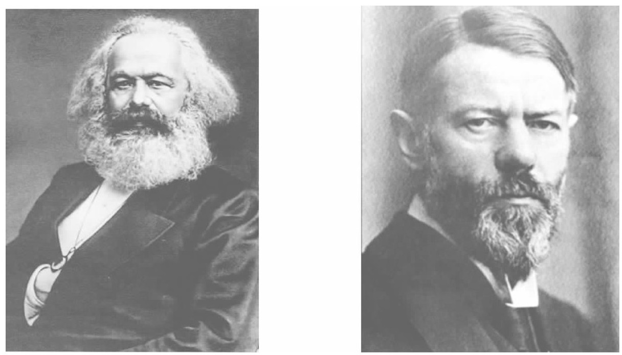 图1-3 卡尔·马克思(左)与马克斯·韦伯(右)