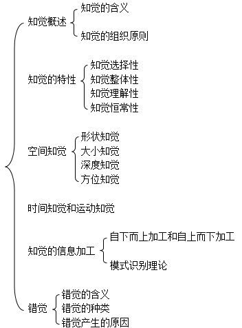 知觉 知觉整体性 知觉理解性 知觉选择性 知觉恒常性 空间知觉 深度知觉 运动视差运动透视 时间知觉 似动 模式识别 错觉