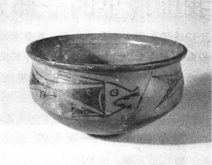 半坡彩陶。最早发现于西安半坡,距今有7000年的历史。是我国彩陶文化历史较早、特点突出、影响较大的一个类型。半坡彩陶的遗址,在河流的岸边,因而半坡的彩陶有汲水尖底瓶、葫芦、长颈瓶,另外还有盆类、罐类,与今天的盆罐大体相似。半坡彩陶早期纹饰,多为散点式构图。也就是说,在一件器型上,装饰往往只占据器面的一小部分,纹样一般是自然形态的再现。半坡纹饰的形象可爱,表现了人类童年的天真稚气和与自然的亲切关系。仔细体味,有人与自然溶为一体的感觉,可以说是半坡人原始生活的记录。纹饰形象主要描绘了当时人们接触的动物,有奔跑的鹿、鱼纹、人面纹、蛙纹、鸟纹、猪纹以及由以上纹样两种或三种组合的纹样。也有一些单纯的任何纹样如折线纹、三角纹、网纹等。