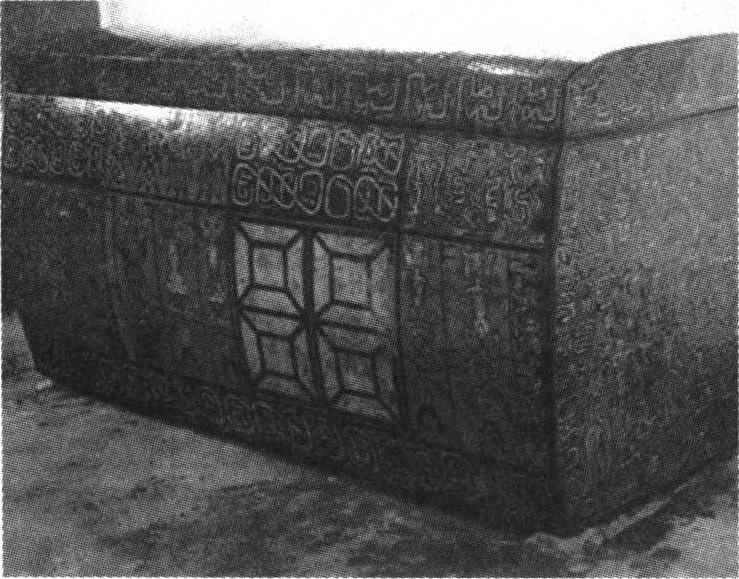 第三组位于东部,刻4个与古代传说中天神有关的人面,用短线和圆点表示五官,其中两个人面的头上刻羽毛状饰物,人面之间也间杂以圆点和符号。