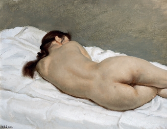 头戴小花的人体 布上油画 27×41 cm 2003年