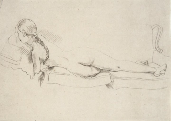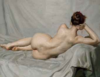 2003年上下学期,全班都在画这位肤色皎白的模特。下页那幅稍大,其间为琐事分身,不能画完。不久,“非典”来了,有空慢慢画,反不如未完成的那幅。