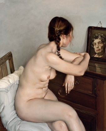 委拉斯开兹,《伊索》,我有一枚好看的单幅印刷品,印得温润朴素,显然出自二战前欧洲制版师傅的手工套色。在普拉多美术馆见到原作后,我仍觉得这枚印刷品自有另有一种好。2003年前后曾将这枚图片嵌在北方乡村老镜框里,搁在桌上。现在与模特儿相对,并非故意:当她坐下,姿势未定时,趋身瞧着图片,我就决定画下来。