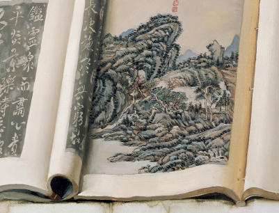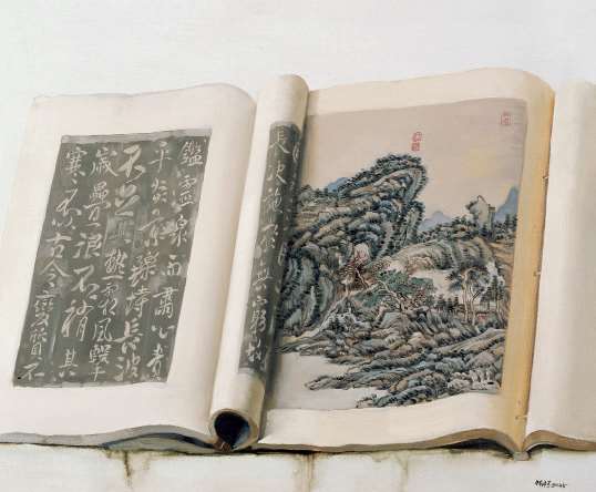 我喜欢唐太宗的字,也喜欢王原祁的画。用油画颜料描摹青绿山水,很容易,描摹行书,却是非常难。此后,直到今年,我一再画同一册带有唐太宗书法的帖子:好像就是他,将王羲之的真迹埋进土里,陪他睡觉了。
