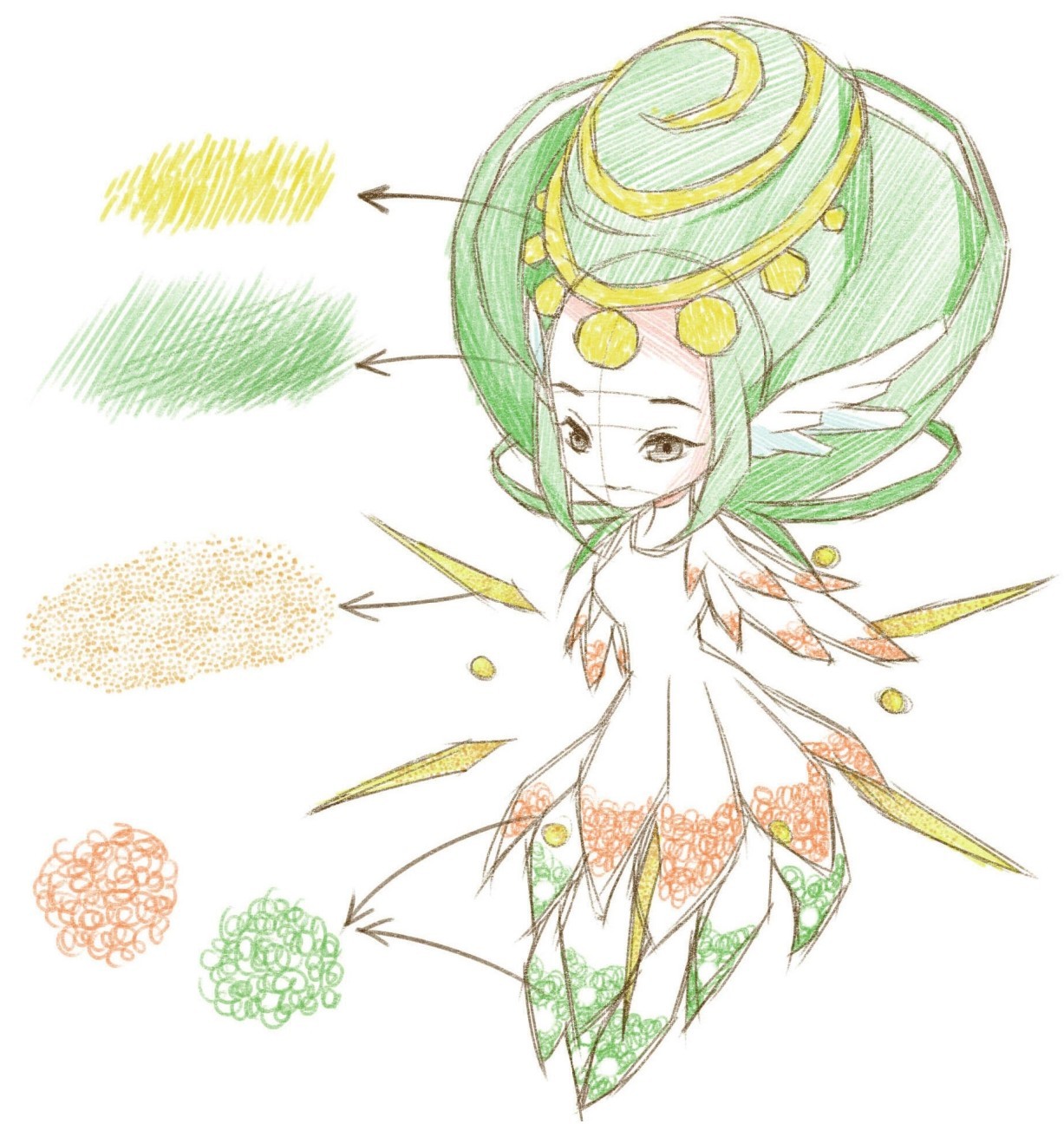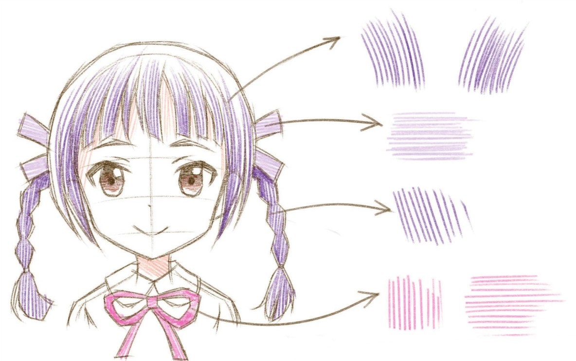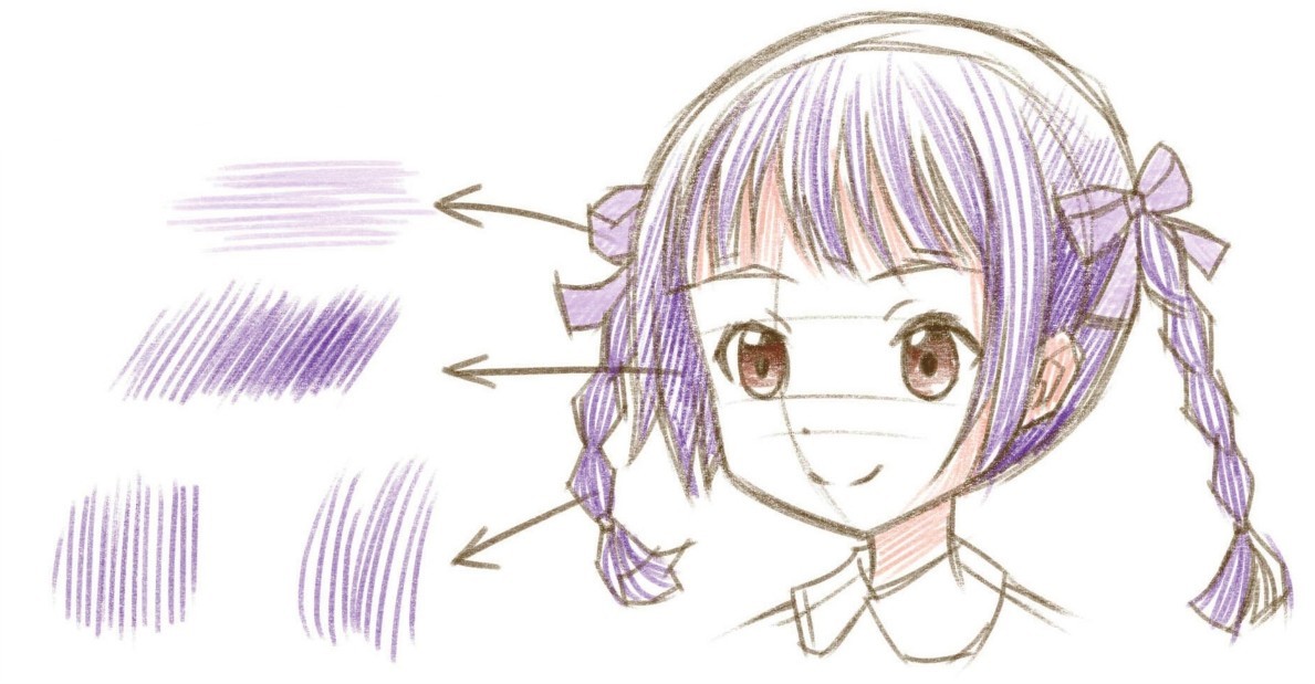 上色时可以用两种或三种颜色画出交叉线条,颜色的变化会更多。但颜色不宜过多,最好不超出三种颜色。
