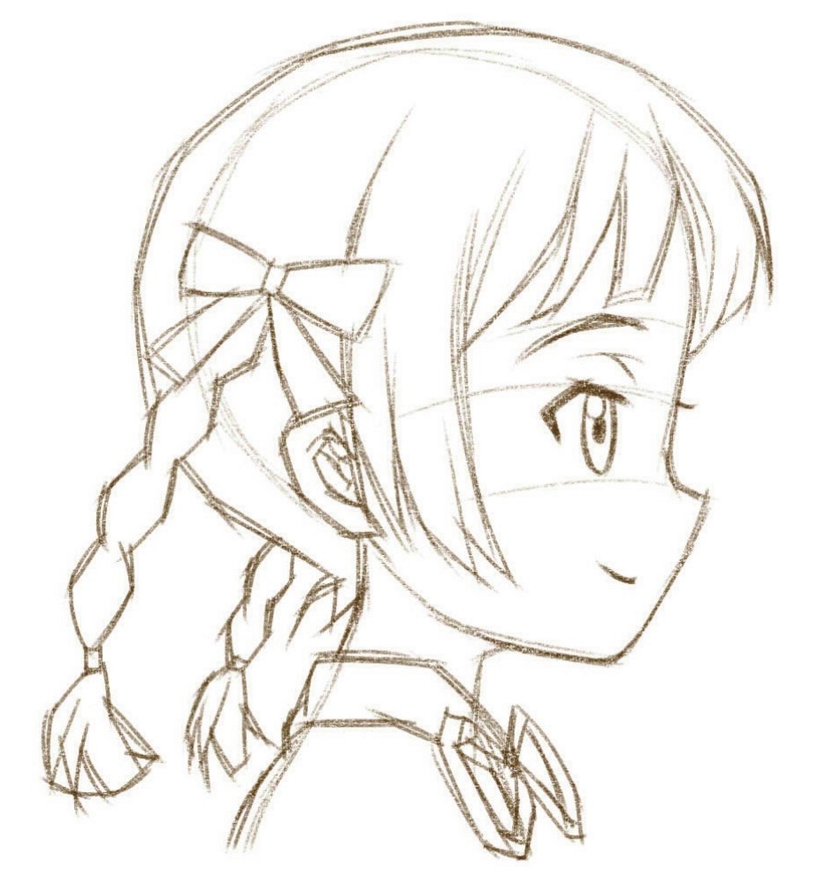 2 用浅棕色画出女孩头发的颜色,用深肉色画出女孩肤色的暗部。