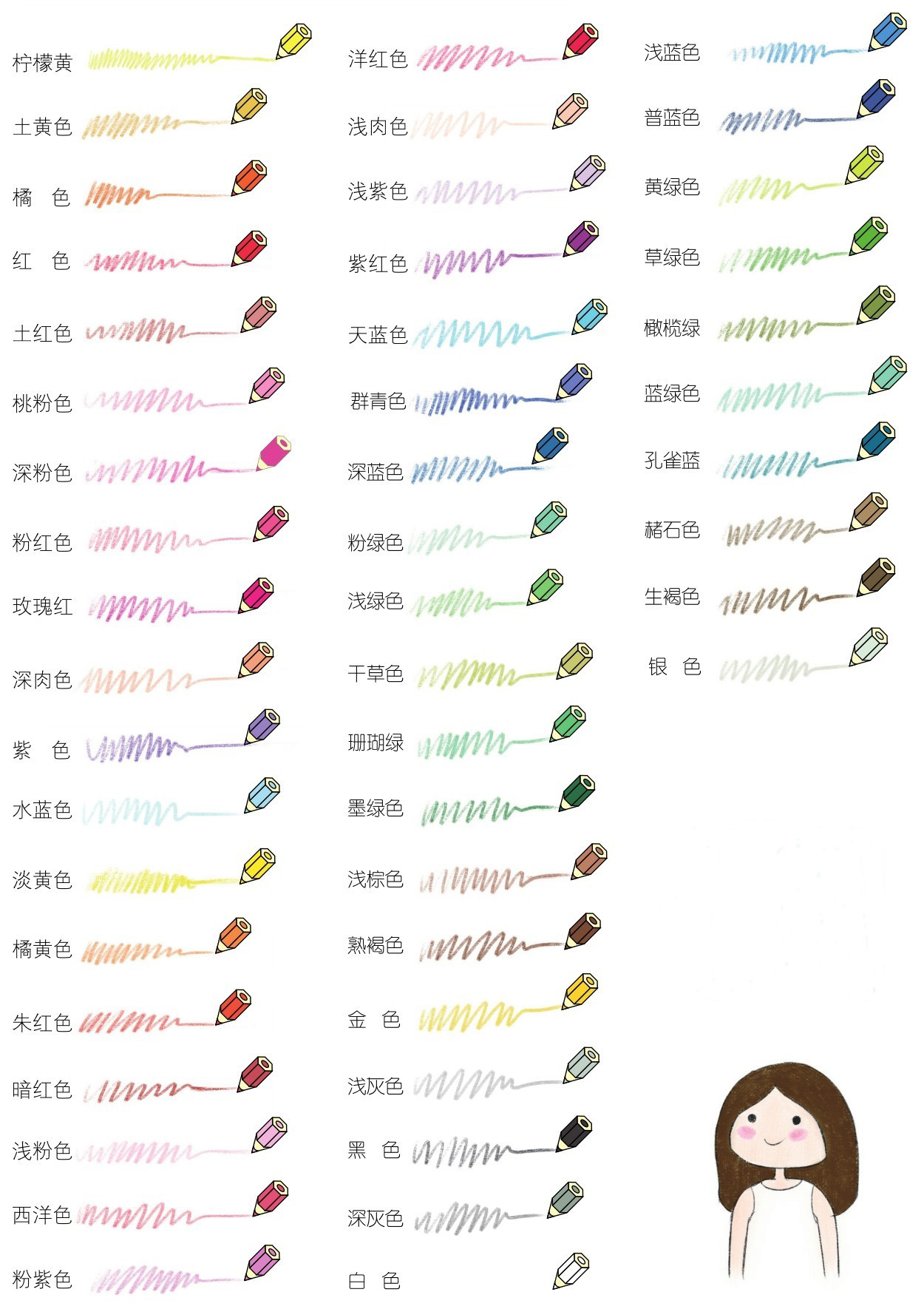 色铅笔的颜色有很多,我们使用常用的48色就足够了。